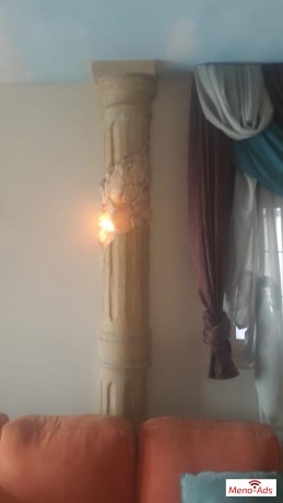 مع عمود هاشمي للانارة يحتوي علي الوبستر وحوائط تجليد هاشمي لباب التراس والسوكلو حجر هاشمي