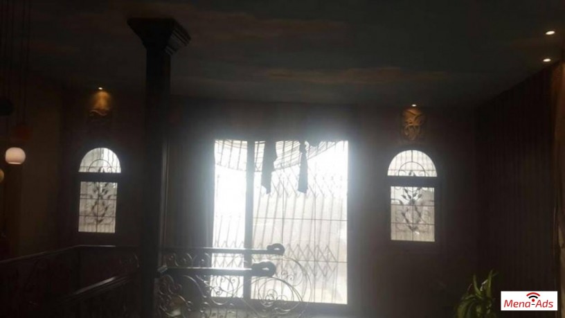 يوجد سلم داخلي من الطرقة للدور العلوي مكسو رخام جلالة مع رخام أخضر هندي والقائم حديد فيرفوجيه مشغول